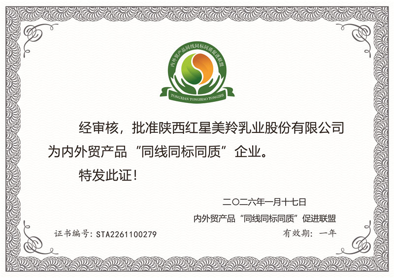 美羚羊奶粉获评“国家地理标志保护产品”“生态原产地保护产品”“陕西省名牌产品”“有机产品”“三同产品”(出口产品与内销产品“同线同标同质”);成人羊奶粉被授予“天猫单日销量最高的羊奶粉品牌大世界基尼斯纪录”;婴幼儿配方羊奶粉连续5年获行业质量金奖。